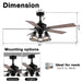 Size Finish Rod Blades Light Fixture Motor Fan Control Fan Speed ETL Listed Location