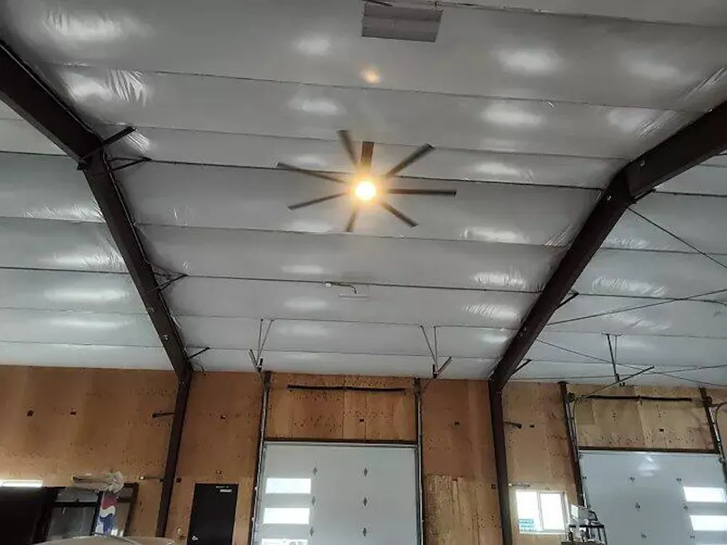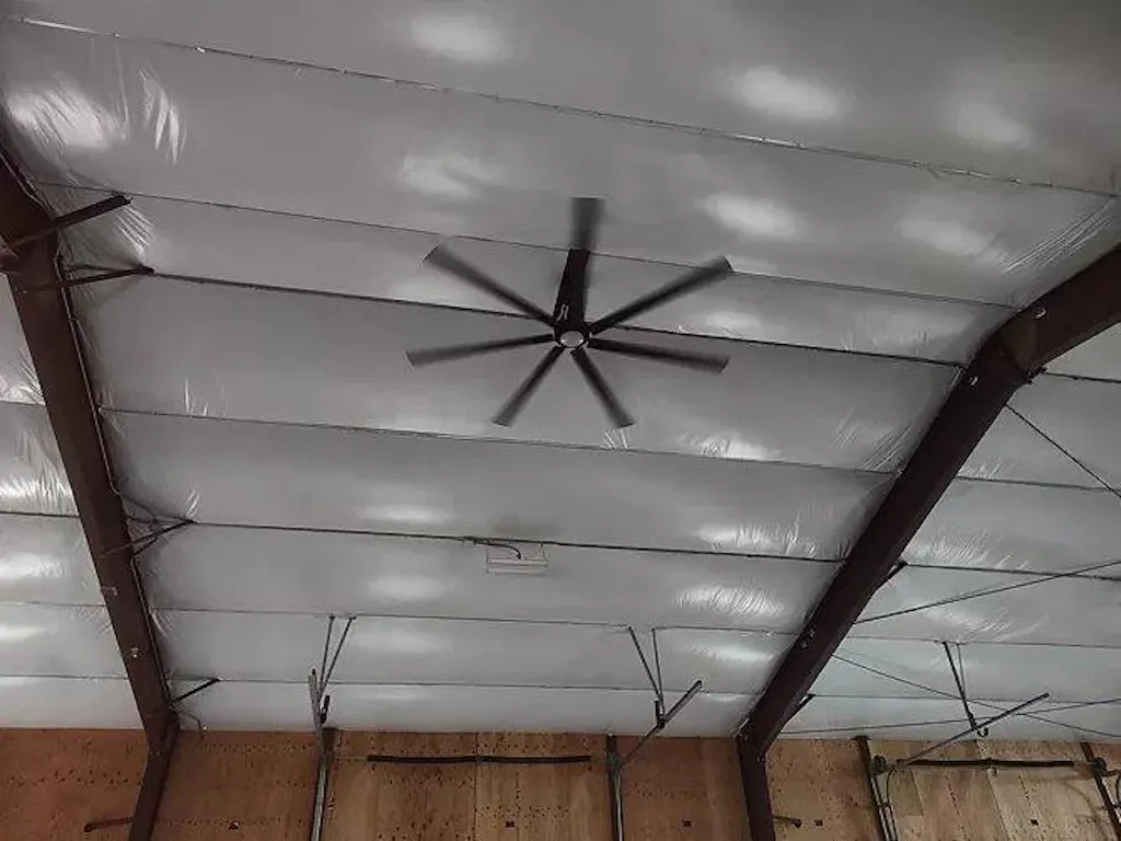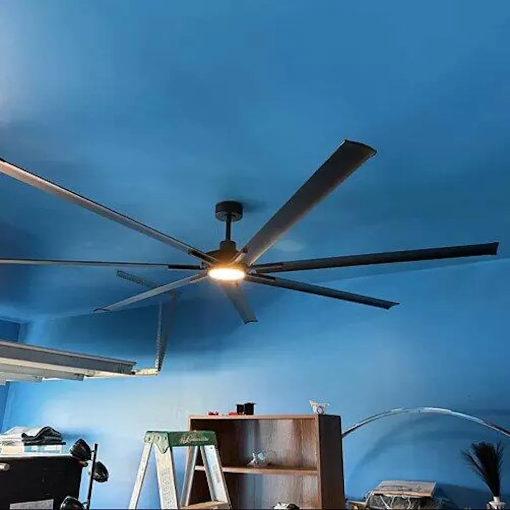 This 84-inch 100-inch Padus Black Industrial Downrod Mount Ceiling Fan is a perfect addition to any large space. This industrial-grade ceiling fan is designed to provide optimal airflow in large rooms, making it ideal for industrial settings, warehouses, gyms, or large living areas. The fan's large 84-inch to 100-inch size ensures it can effectively cool large spaces. This ceiling fan is not just functional, but also has an integrated light, adding to its utility. The light is energy-efficient, providing ample illumination while consuming less power. Additionally, the light's color temperature can be adjusted to suit your needs. The fan also comes with a remote control, allowing you to adjust the fan speed and light settings from anywhere in the room.