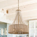 This bead chandelier, featuring natural wood beads and a gold metal base, brilliantly merges farmhouse vintage and bohemian styles. Its unique design makes it an ideal addition to any modern or mid-century styled home. Crafted from high-quality metal and durable wood beads, this wooden bead chandelier is built to last. It requires 4 E12 bulbs (not included), making it an excellent choice for home decoration.